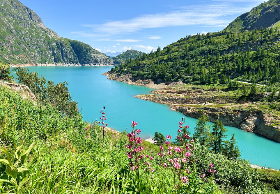 We start the trail at the Chapelle de Notre Dame de la Neige. This chapel is located on an elevated position above the big open area where the Restaurant du Barrage de Vieux Emosson is located. If you are coming from the direction of the large carpark then you will see a paved road on your left heading up a slope. Follow this for about 100 meters and you will reach the chapel. From the chapel we walk do down passed the restaurant. If you are adventurous you can take the zipline to make your way down to the far end of the dam. If this is too much adrenaline for you, then simply follow the path down the dam and walk across to the other side. Keep following the paved road that follows the lake until you see trail marker and a little trail on your left. The trail marker will say Vieux Emosson. You will climb steadily over a crest. Just keep following the signs for Vieux Emosson and you will easily reach the Cabane below the dam. You can climb up to the dam via the paved road which then turns into a trail a little further up. Once you are ready to head back simply go down until you are back on the paved road. We suggest you now just follow the paved road until it reaches the bigger dam again at the start of the trail. The views from the road are nice and there are a couple of tunnels cut out in the rock. If you prefer you could also take the exact same trail that you used for reaching the Vieux Emosson dam.
