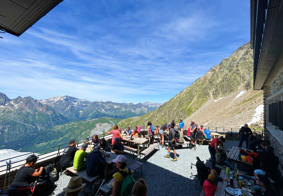 The Refuge Albert 1er, at an altitude of 2702 meters, is one of the most accessible high altitude refuges in the Chamonix Valley thanks to the Charamillon gondola, which departs from Le Tour, and the Autannes chair lift. The refuge sits next to the large and imposing Glacier du Tour and provides excellent views of the glacier throughout much of the trail. The refuge itself is an impressive structure and has a nice kitchen serving tartiflette, croute and a range of salads. Very impressive if you think of the altitude they are serving it at.