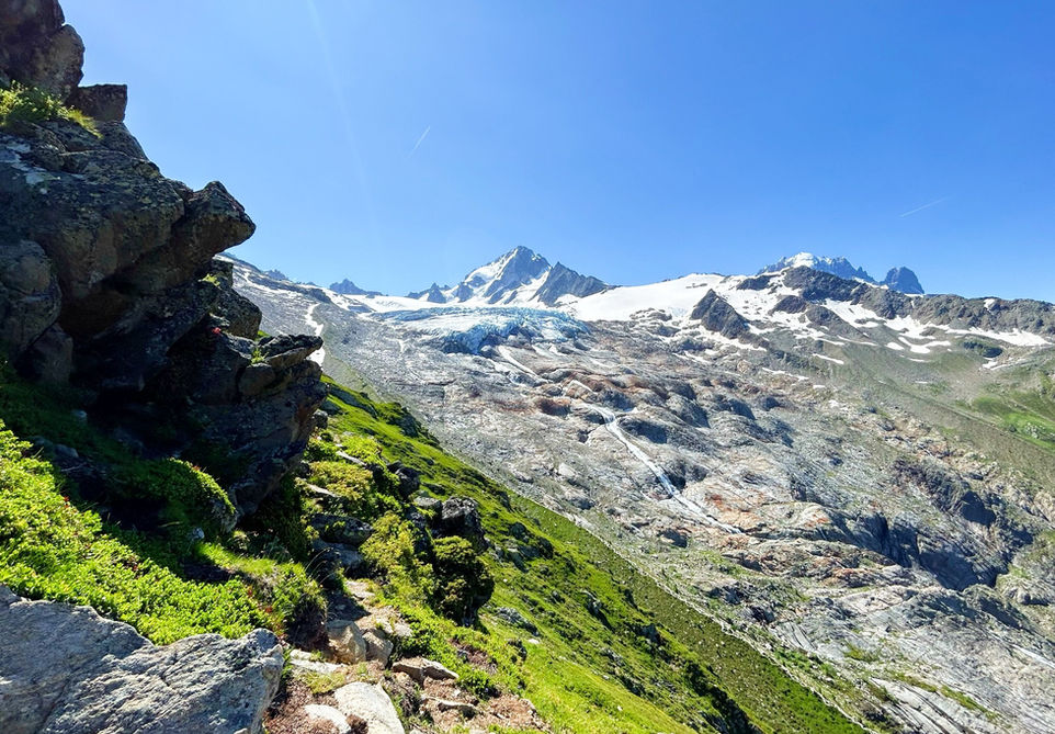 This route reaches an altitude of 2702 meters and it will have varying degrees of snow cover until quite late in the season. In most cases the trail be doable at the start of July and mostly snow-free by mid July. Check ahead of time if the trail and refuge are reasonably accessible. The trail is well marked with very few splits in the road. So getting lost is nearly impossible as long as the trail itself is not covered in snow. The main option we present here is technically easy and doable for children. The option we describe above where you take the alternate path down and follow the glacier all the way down to Le Tour is a lot more technical and we would rate that as difficult and not family friendly.