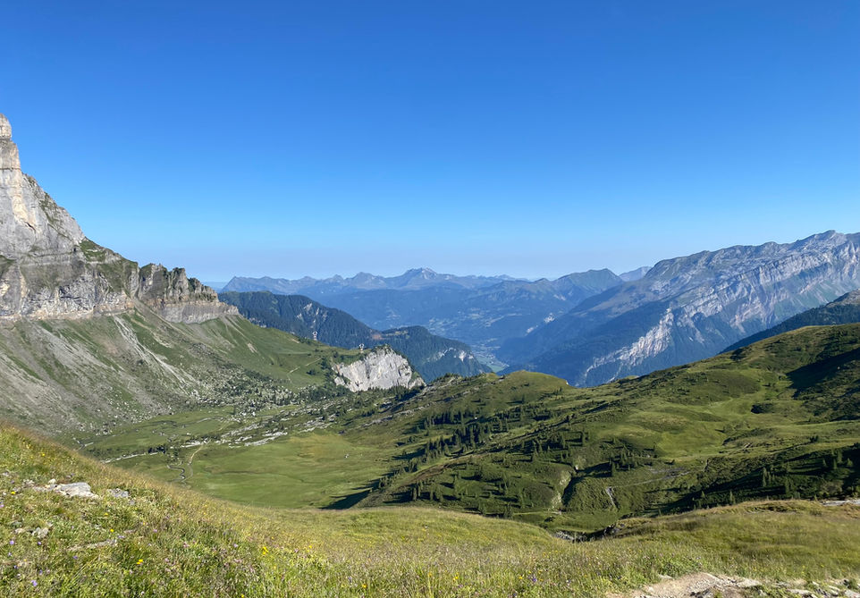 A well-known classic route for exploring the Fiz mountain range above Servoz and Plateau d'Assy with 4 popular refuges along the way: Refuge Moede Anterne, Refuge Alfred Wills, Refuge de Sales and the Refuge de Plate. The trail offers a nice variation in scenery with great views of the Mont Blanc and multiple valleys and well-known peaks. You will be seeing a lot and passing a number of cols giving access to new valleys and new view points. You will be going through large parts of the Six-Passy natural reserve and as such it will all be very natural with no paved roads or chalets except for the occassional refuge. The trail is quite popular though, so you are unlikely to be going at it alone.